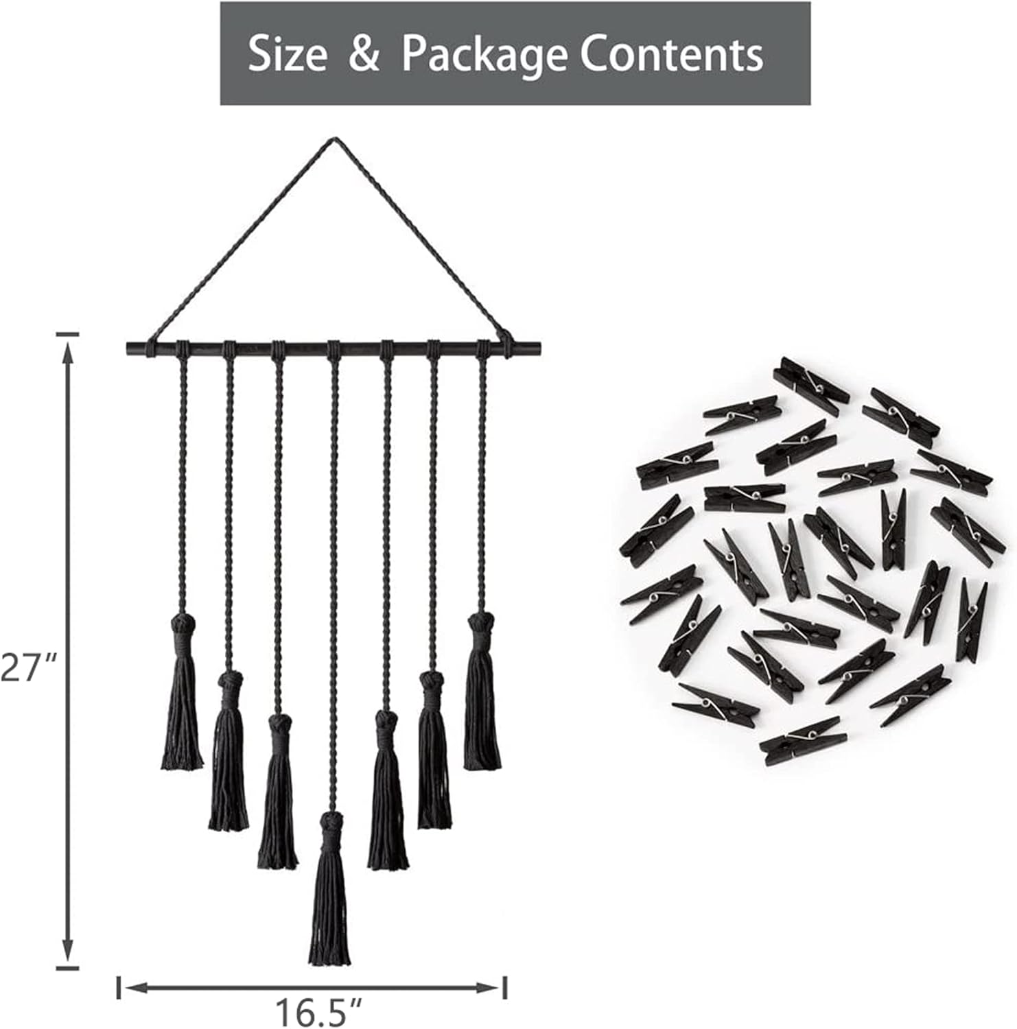 Mkono Boho Macrame Photo Display Wall Hanging – Picture Holder Decor (27×16.5 in)